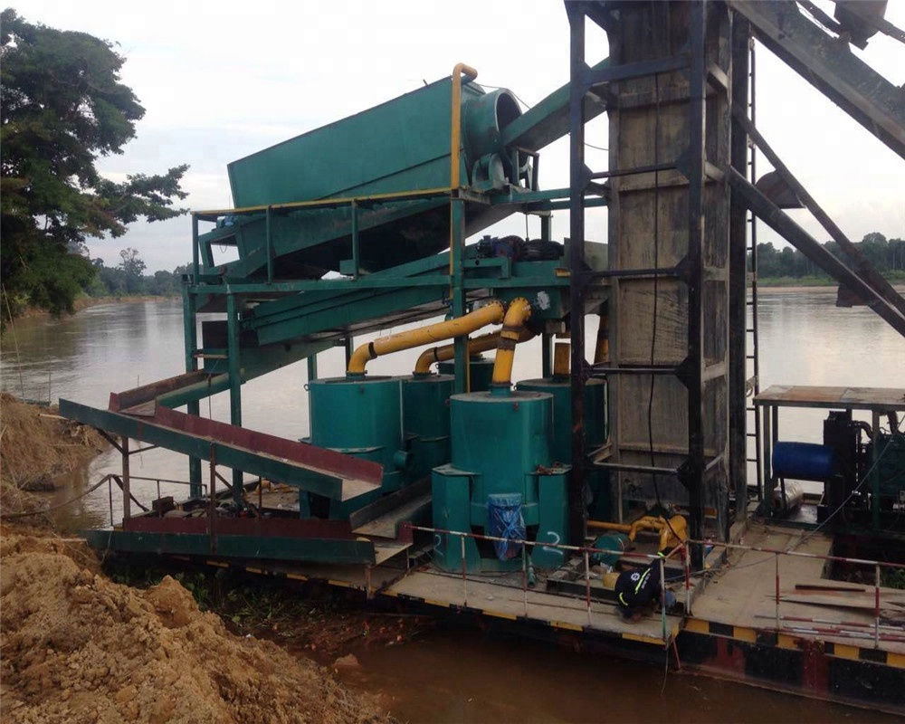 下面來說一下淘金船的回收率。 淘金船的回收率是由選金系統決定的,河道含金的沙料開采上來后,需要進入篩分系統。篩分系統把廢料石塊排走,含金的沙子進入選金系統回收黃金,這個選金系統好幾種選擇,每一種選擇回收率都是不同的。
