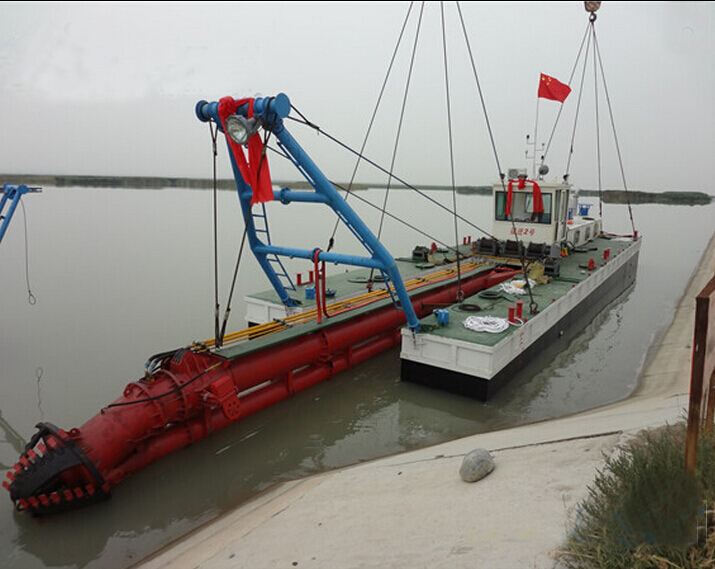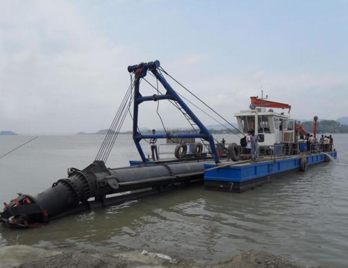 3、如果輸送的距離較遠還要通過裝在船體內的艙內泵進行接力輸送。有些抽沙船本身沒有航行能力,它每換一處工作位置,總是靠拖船帶動,從水底挖出的泥沙則需要傾入到配套的運輸駁船里拖走。本身有航行動力的抽沙船在通行較大的船舶的航道上施工,用粗大的軟管(排泥管)抽吸泥沙,抽沙船把泥沙存在艙中,裝滿后開往指定地倒掉。其工作能力則是以每小時能挖多少平方米泥土來衡量。