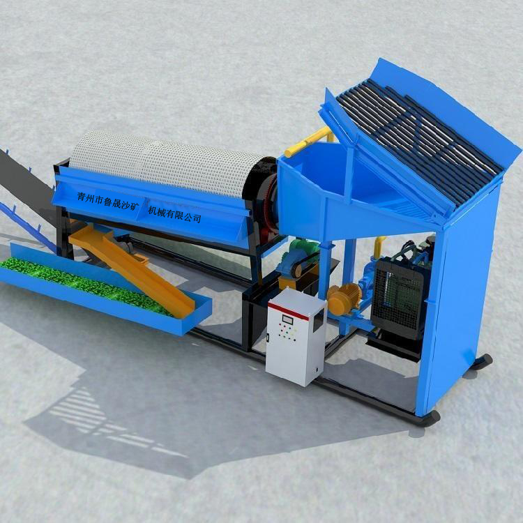 結構 由:料倉—格篩—擦洗桶—滾筒篩—溜槽—底座等部位組成。 設備上有多處沖水系統,沖水系統水槍均為高壓水槍。設備可配用鼓動溜槽、蠕動溜槽、水套離心機等。
