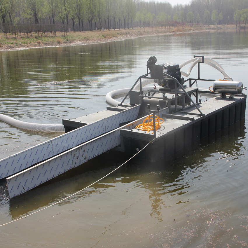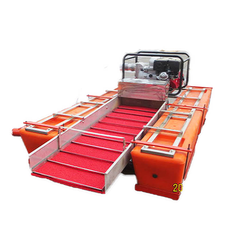 另選用水泵的新噴射系統,吸力也大幅提升。這增加了一個新的分類與產生更有效的低壓渦旋的選金墊,可大幅提高金回收率。 我們獨特的選金淺灘墊平鋪在溜槽底部,可快速和容易清理的。浮筒選用橡膠氣囊,表面沾有防磨的保護皮,可避免樹枝、巖石刮破浮體。充氣系統配備一個腳踩式充氣泵,無需使用時可以折疊起來,方便拿取。