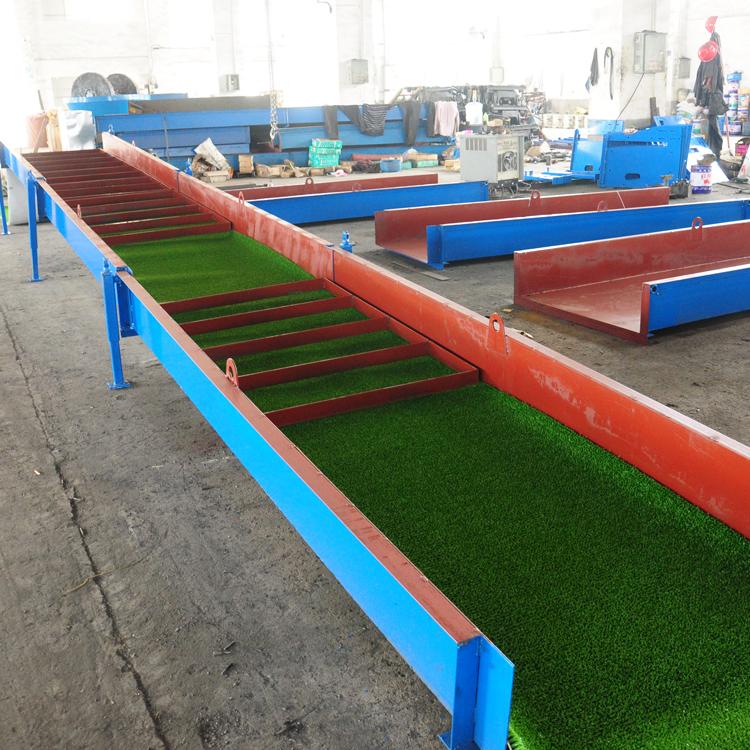 另外一種常見的是鏈斗式的,這種鏈斗式的是通過一個一個的挖斗將河底的沙子挖上來,再進(jìn)行礦沙的篩分和回收黃金的工作。這種鏈斗式的類似于鏈斗輸送機(jī),通過一個一個的挖斗在水下循環(huán)進(jìn)行挖掘,可以挖到河底底部,往往河底底部含金量高一些。這種挖斗尺寸不同,產(chǎn)量也不同可以根據(jù)客戶的要求來進(jìn)行船的定制,常見的有時產(chǎn)量100噸的, 時產(chǎn)量200噸的,時產(chǎn)量300噸的,小型的還有時產(chǎn)量50噸的,都是可以定制的。選尾礦的設(shè)備